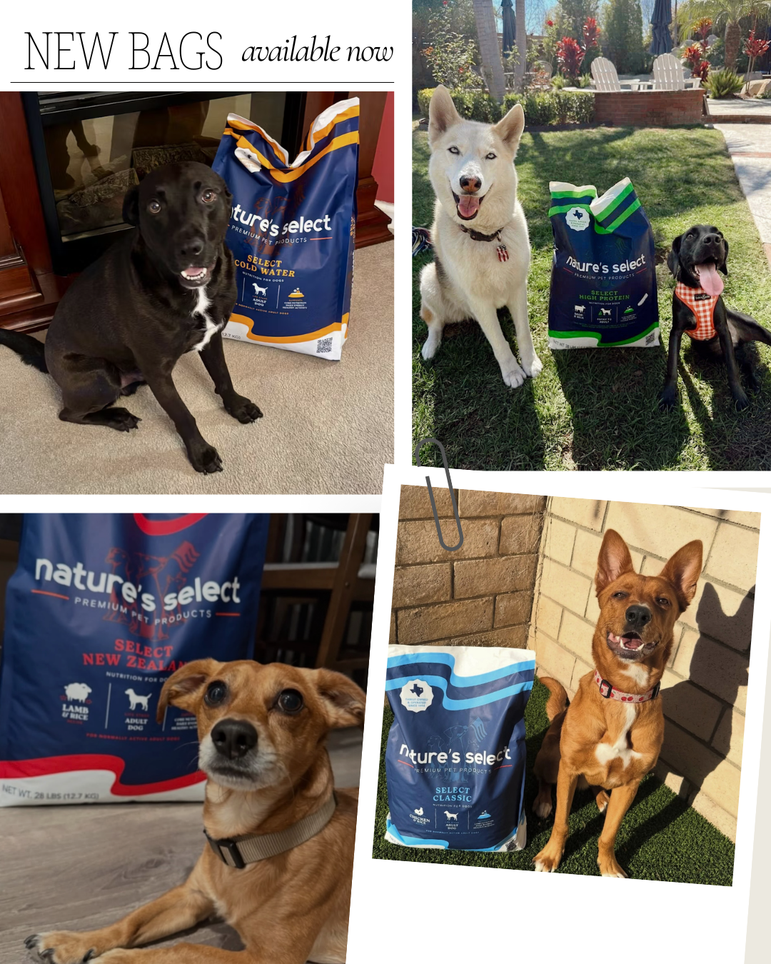 We are currently building up our library of photos showing real-life customers with our NEW bag designs! Tag us in your photos on social media @naturesselectpetfood #NaturesSelect or email your photos to info@naturesselectcorp.com to be featured!