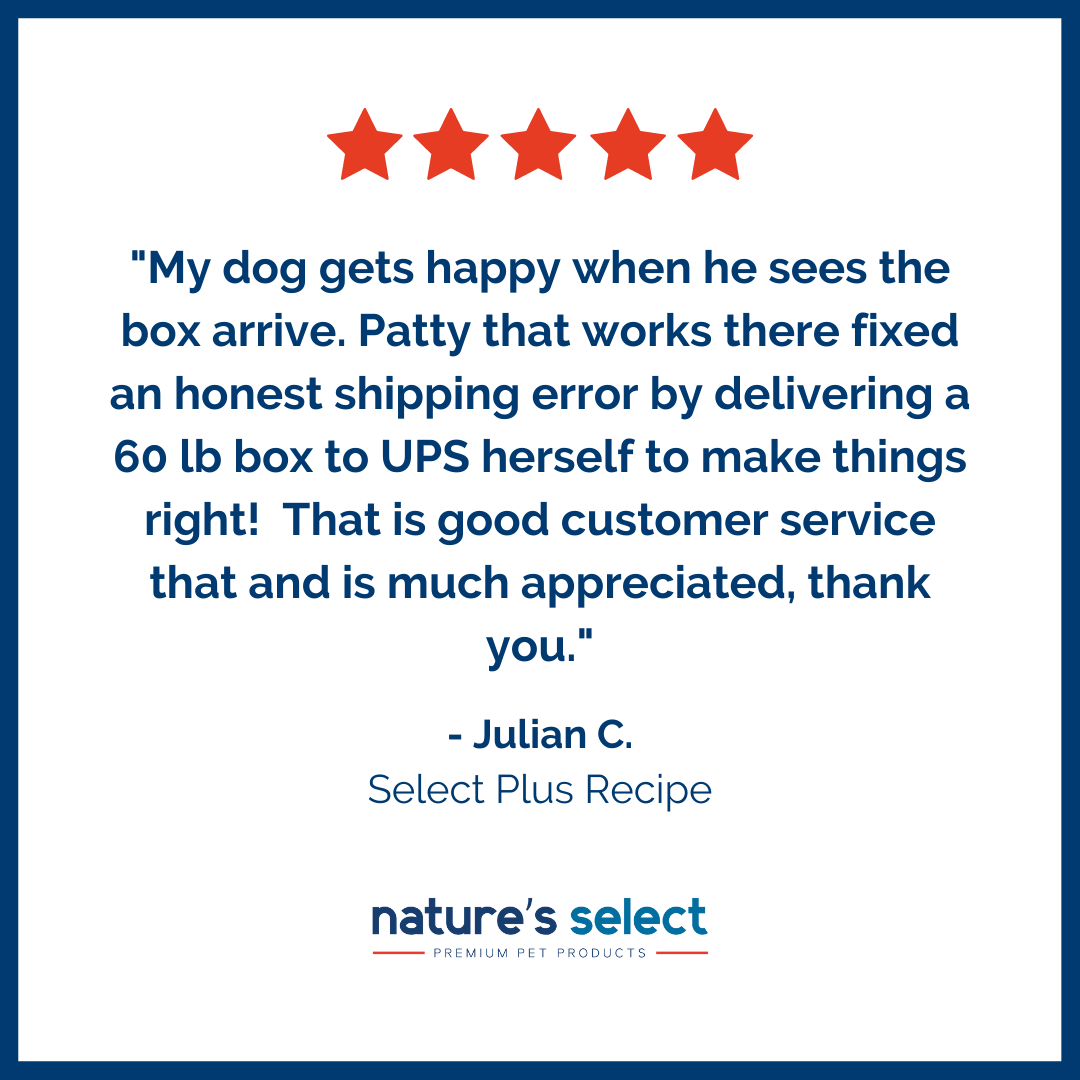 We take a lot of pride in what we do through our quality pet products and personalized customer service. Our use of high quality, locally sourced USA ingredients contribute to a safe pet product overall and as such, we have never had a pet food recall in our nearly three decades of history. At Nature’s Select you can count on us to always put the health of your dog above the rising cost of goods. We will never sacrifice the integrity of our pet food recipes as we truly care about the end result of our product as your pet's health and nutrition always comes first and remains our top priority. Since 1994, it's been a true joy and pleasure to serve our loyal pet food customers all across America.