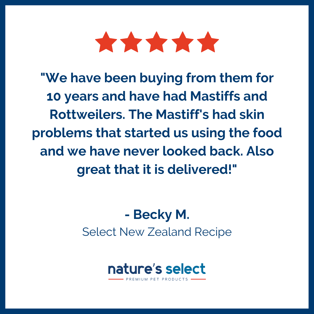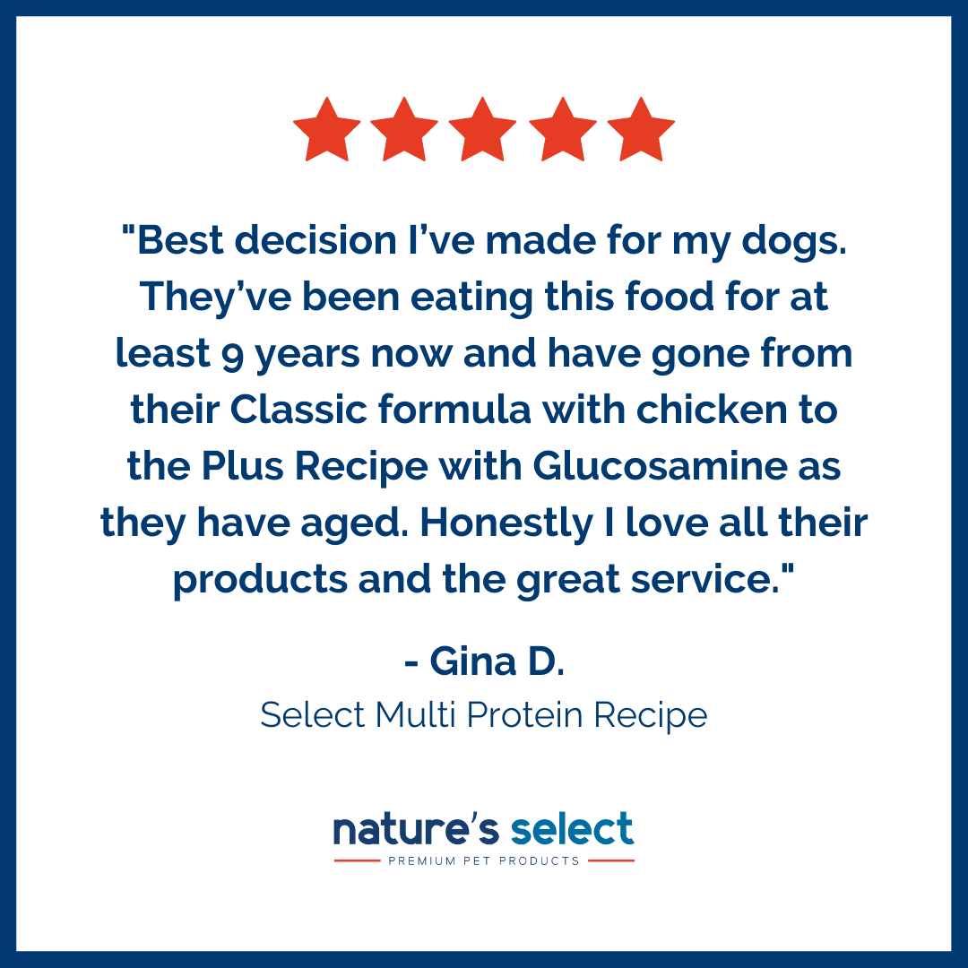 Since making the switch to Nature’s Select we’ve noticed a huge difference in her levels of energy and her coat is shiny and smooth.